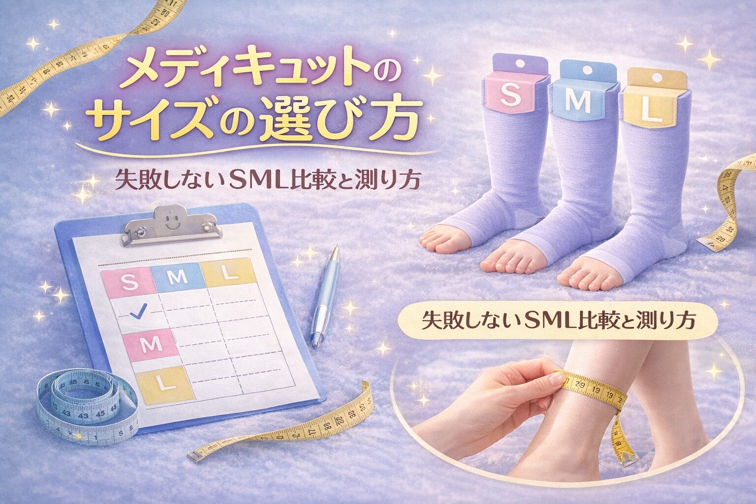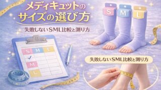 着圧アイテムはサイズが命です。大きすぎると圧力がかからず効果半減。小さすぎると血行を逆に妨げることも。